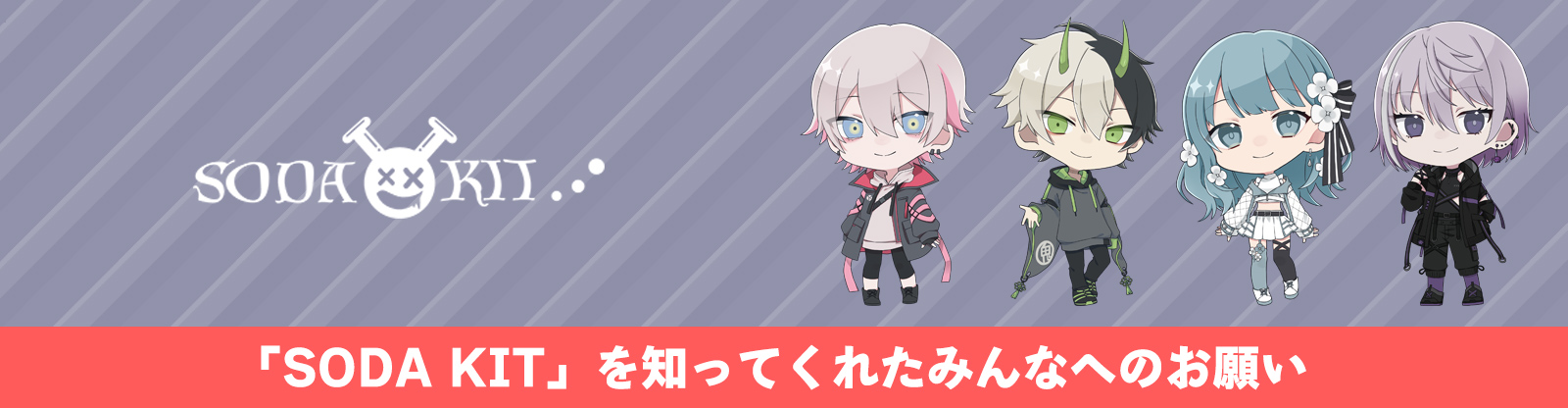 SODA KITの音楽やイラストを「個人の趣味の範囲外で使うこと」、「公序良俗に反する二次創作物、政治・宗教に関する二次創作物、及び悪意に基づく二次創作物を制作すること」はNGです!